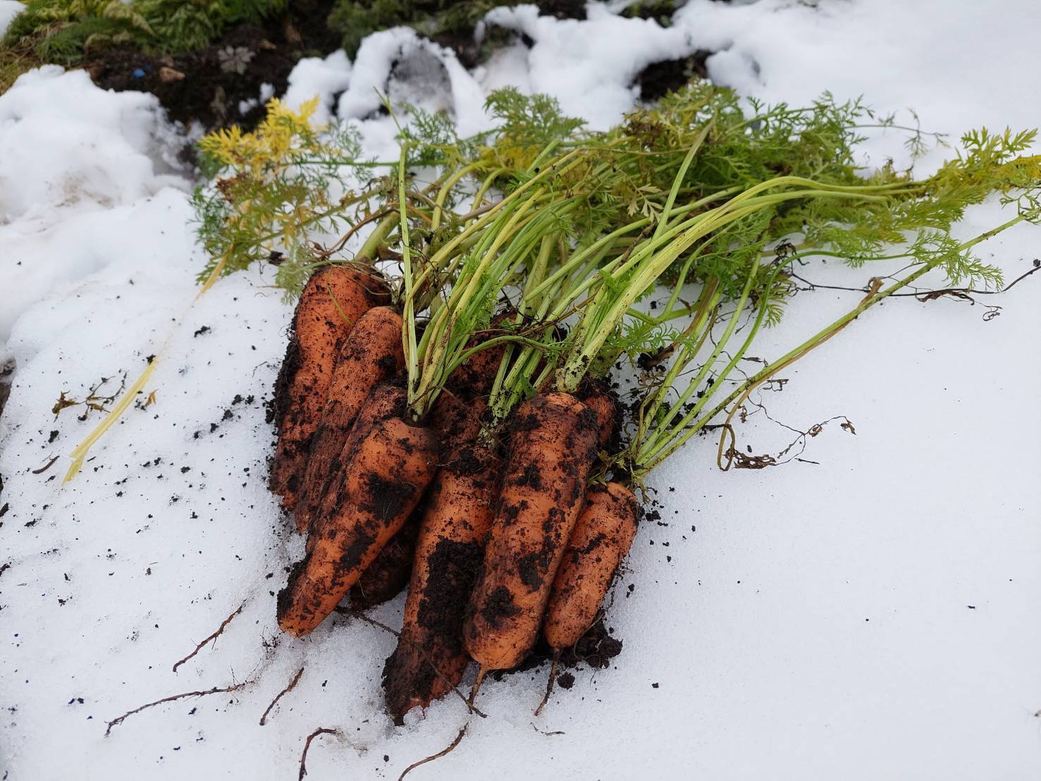 ■雪の下で「自分を甘くした」人参です 12月の降雪により、畑は一度深い雪に覆われました。人参は凍ってしまわないよう、自らの澱粉を糖に変えて身を守ります。その後、雪が解けたタイミングを見計らって掘り出したのがこの人参です。厳しい寒さを乗り越えたからこその、凝縮された深い甘みをお楽しみください。